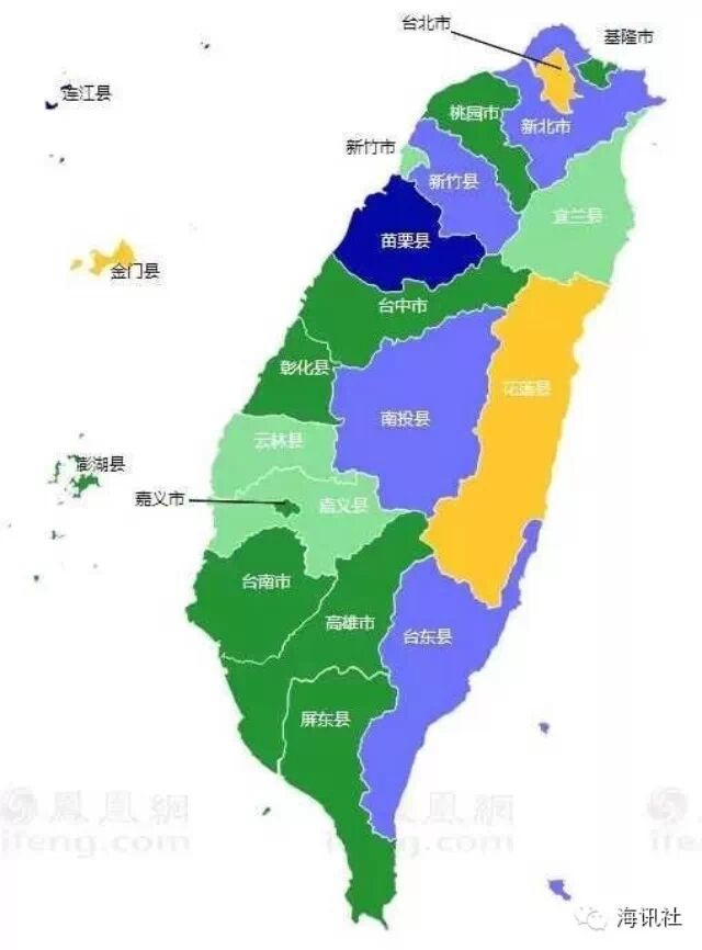 国民党6席:新北市、新竹县、苗栗县、南投县、台东县、连江县。