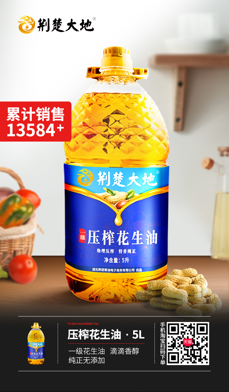 荆楚大地一级压榨花生油:采用当季红皮花生为原料,采用纯物理压榨,无任何化学添加剂,取初榨精华,富含油酸、亚油酸、维生素E、锌钙等多种人体必须得营养元素,不含胆固醇,具有花生原油固有的气味和滋味。
