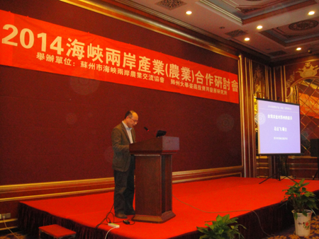 4月4日,2014海峡两岸产业(农业)合作研讨会在苏州举行,秘书长石云飞硕士就多次组织赴台交流考察、驻台开展工作等经验,通过多层面的接触对台湾在发展现代农业过程中的产业政策,农业合作组织形式,农业产业化发展组织形式和运行机制,在发展设施农业、特色农业、信息技术、生物技术和农产品质量管理体系、休闲农业、精致农业、农产品品牌建设等促进农业可持续发展一系列问题有了比较详尽的了解,对我们下一步在借鉴发展现代农业中必将起到很大的启发和促进。