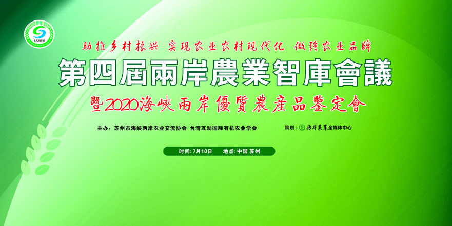 为推动海峡两岸农业学者间学术交流,本会拟于2020年7月中旬在苏州举办“第四届两岸农业智库会议”暨“2020海峡两岸优质农产品鉴定会”。会议主题为“助推乡村振兴•实现农业农村现代化•做强农业品牌”。围绕现代农业和乡村振兴工作,进一步挖掘各地在三农领域的新经验、新成就、新典型,为党委政府提供决策参考,为基层单位提供借鉴经验。同时也开展“2020海峡两岸优质农产品”评定,对获奖产品给予表彰、宣传等。会议由苏州市海峡两岸农业交流协会(中心)、台湾互动国际有机农业学会主办,两岸农业杂志社承办。