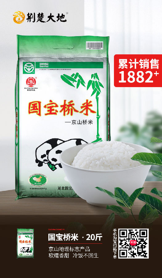 荆楚大地国宝桥米:国宝桥米是天然的常规稻,非杂交,非转基因,一年只生产一季,米粒纤长,洁白如玉,口感软糯香甜而且有回甜,深受广大消费者喜爱,在湖北可谓家喻户晓,老顾客极多。