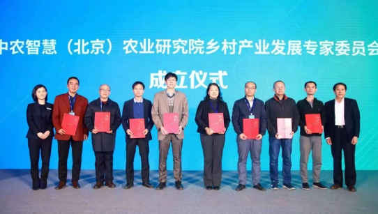 为向全国乡村产业发展提供智慧策略和人才动能,“中农智慧(北京)农业研究院乡村产业发展专家委员会”在论坛上成立。国务院发展研究中心农村经济研究部副部长程郁,全国乡村文化产业创新联盟常务副主席孙林,中华全国农民报协会秘书长魏小兵,上海交通大学教授周武忠,中农智慧(北京)农业研究院院长王维共同启动了成立仪式。