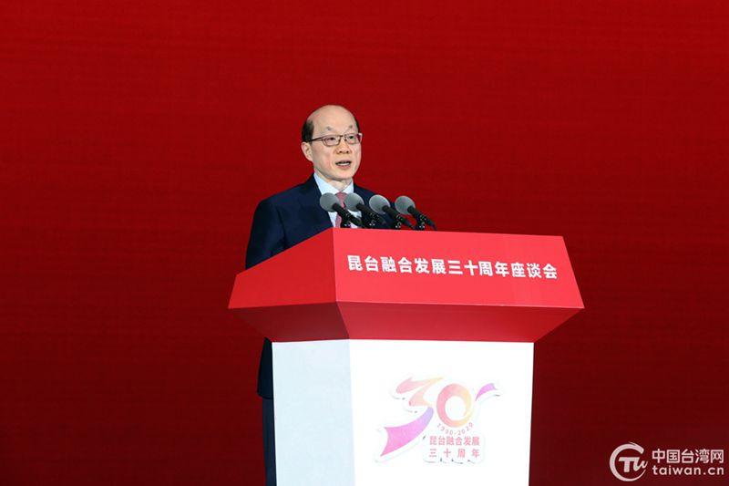 中共中央台办、国务院台办主任刘结一出席昆台融合发展30周年座谈会并致辞。(中国台湾网 尹赛楠 摄)