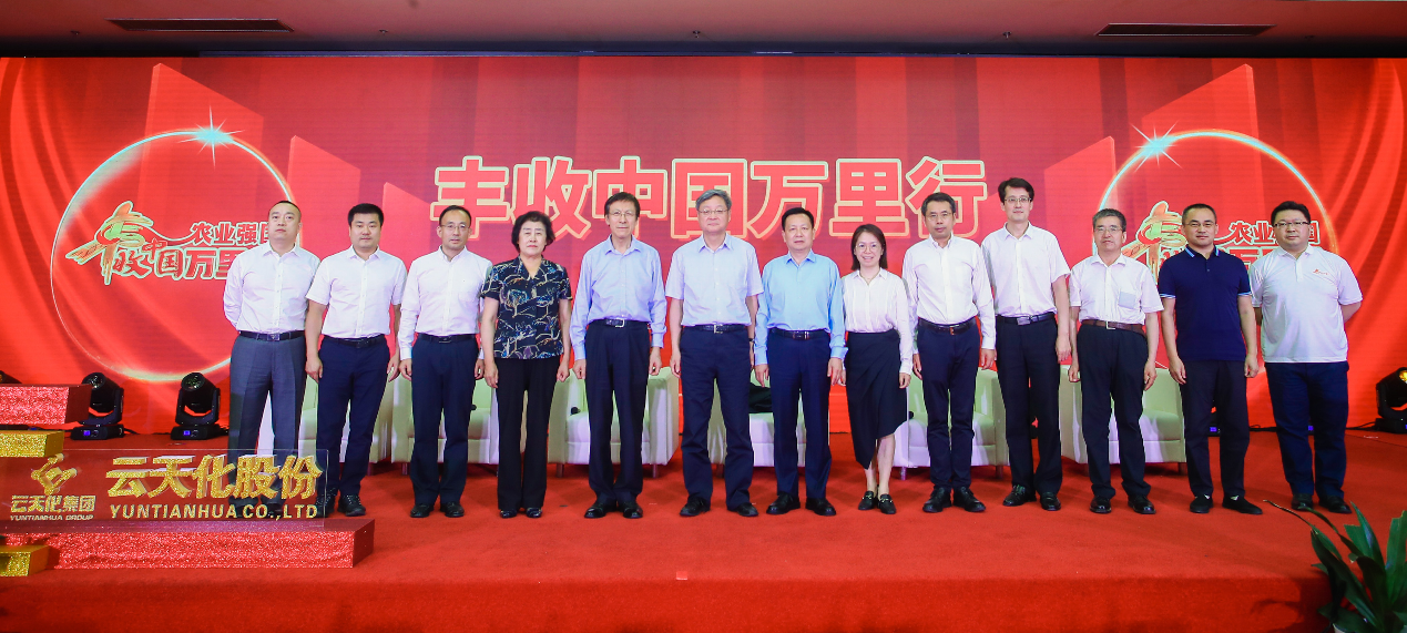 云南云天化股份有限公司副总经理何涛表示,在丰收中国万里行活动中,我们携手全国绿色农业示范、品牌农业标杆和乡村致富带头人,让有想法、懂技术、敢创新的三农创业者们共同参与,推广先进农业技术,助推农业产业升级,用榜样的力量影响数以亿计的中国农业人。并表示云天化将在工业制造和农业现代化领域持续发力,推动全产业链绿色发展,以绿色科技服务现代农业,为农业发展和乡村振兴做出更大的贡献。