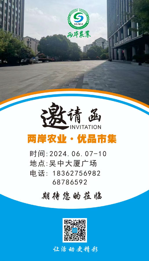 “两岸农业•优品市集”于6月7--10日在吴中大厦广场举行
